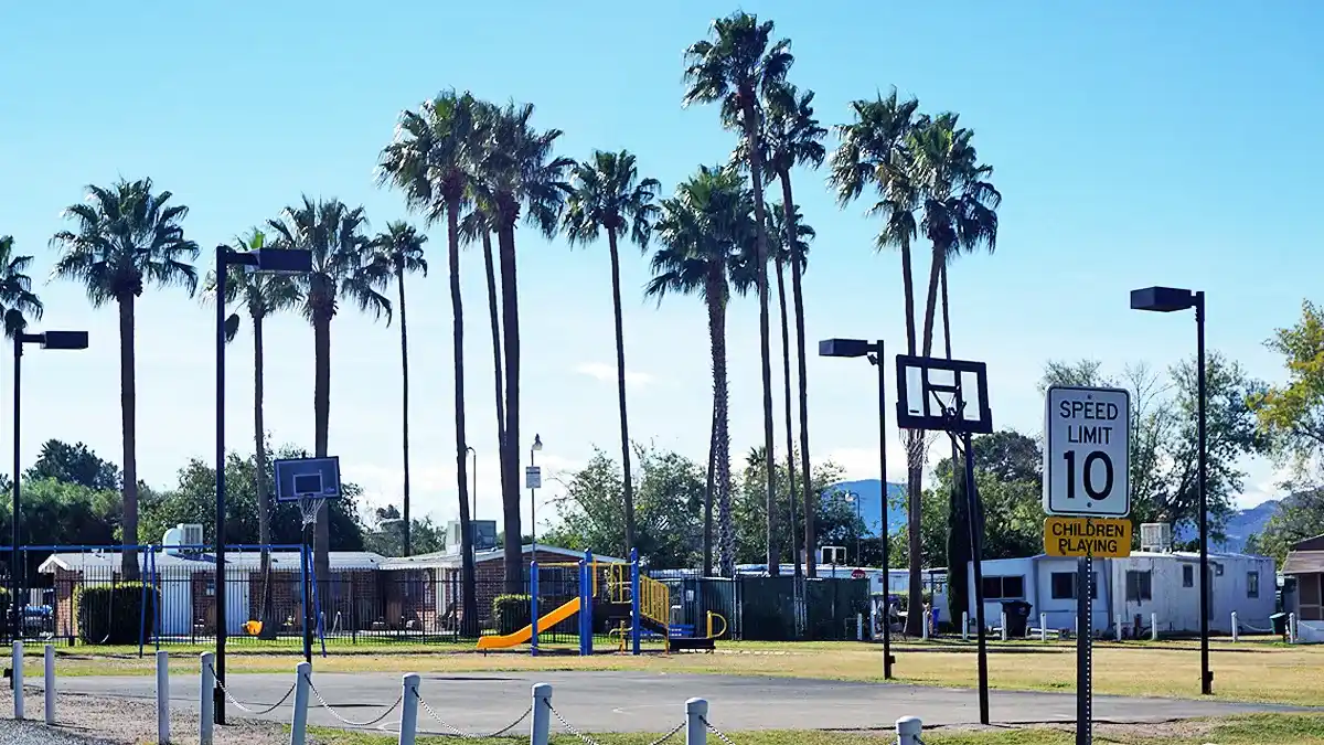 Continental West is a standout among Mobile Home Communities in Arizona, offering a variety of family-friendly amenities that enhance the quality of community living. Residents enjoy access to two sparkling swimming pools, a full-sized basketball court, and a playground that provides a safe and fun environment for children. The spacious clubhouse, complete with a kitchen, is ideal for hosting events, while shaded picnic areas, BBQ grills, and a pavilion make outdoor gatherings easy and enjoyable. On-site laundry facilities also add everyday convenience for residents. Contact our team today!